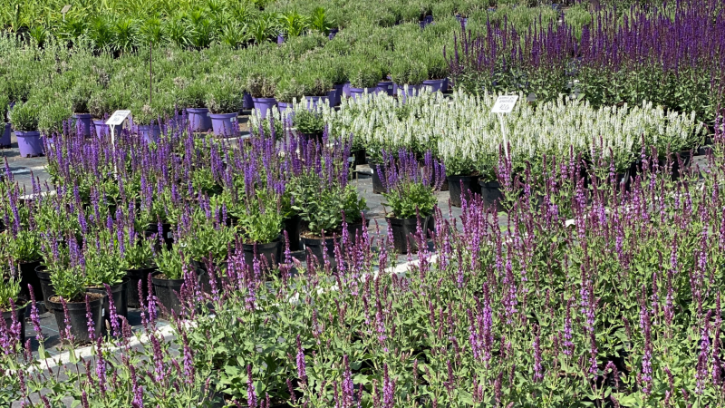 Обязательно обратите внимание на лаванду. Этот необыкновенный многолетний кустарник мы уже несколько лет выращиваем для вас в питомнике, он прекрасно показал себя этой суровой зимой, выдержав затяжные морозы в 40 градусов (да, у нас в Курумоче несколько недель держалась такая аномально низкая температура).